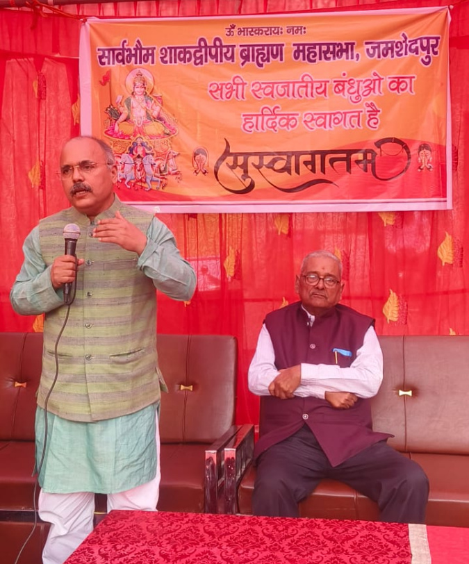 जमशेदपुर : सार्वभौम शाकद्वीपीय ब्राह्मण महासभा के तत्वावधान में रविवार को अचला सप्तमी का पावन पर्व पूरे श्रद्धा और भक्ति भाव के साथ मनाया गया। एग्रिको स्थित शिव मंदिर परिसर में आयोजित इस धार्मिक अनुष्ठान में भगवान सूर्य (भास्कर) की विधिवत पूजा-अर्चना की गई।