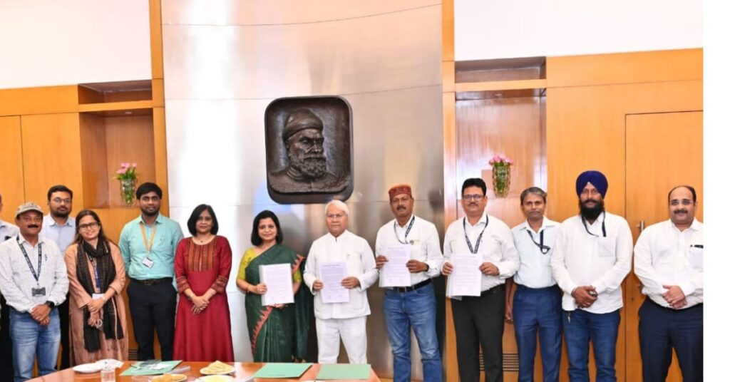यूनियन की ओर से: अध्यक्ष राकेश्वर पाण्डेय, परविंदर सिंह, और मनोज सिंह।