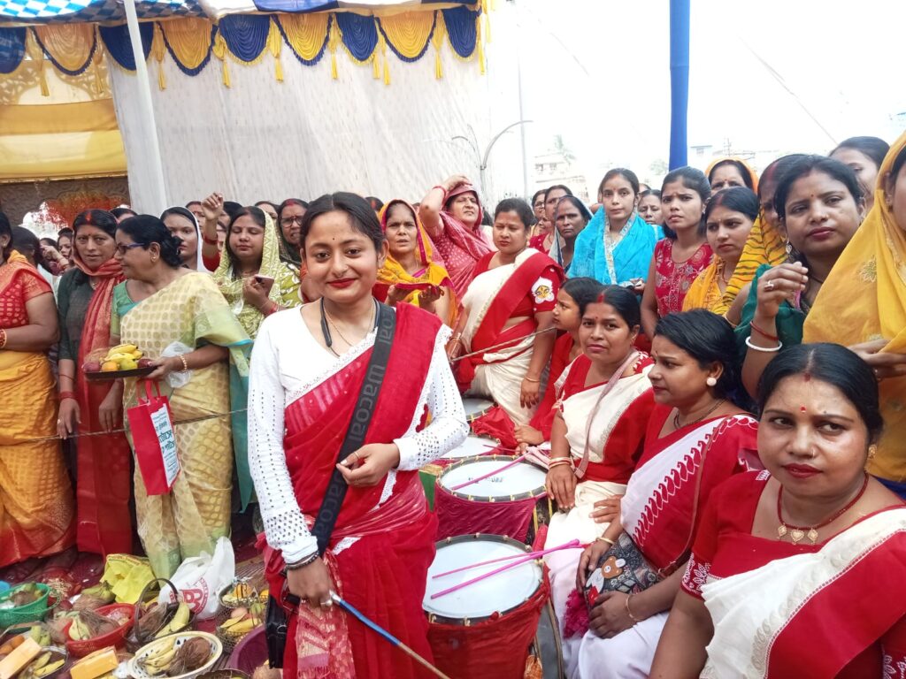 इस बार पूजा पंडाल में महिला ढाकी टीम ने विशेष आकर्षण पैदा किया। पारंपरिक ढाक की धुन पर उनकी प्रस्तुति ने श्रद्धालुओं को मंत्रमुग्ध कर दिया। उपस्थित लोगों ने महिला ढाकियों की सराहना करते हुए तालियों से उनका उत्साहवर्धन किया।