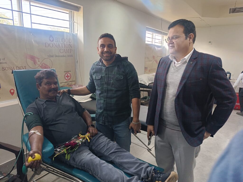 जमशेदपुर : घाटशिला प्रखंड के कीताडीह स्थित सोनादेवी विश्वविद्यालय परिसर में 22 दिसंबर को एक रक्तदान शिविर का सफल आयोजन किया गया। शिविर में बड़ी संख्या में युवाओं और स्थानीय नागरिकों ने उत्साहपूर्वक भाग लेते हुए रक्तदान किया और मानव सेवा का संदेश दिया।