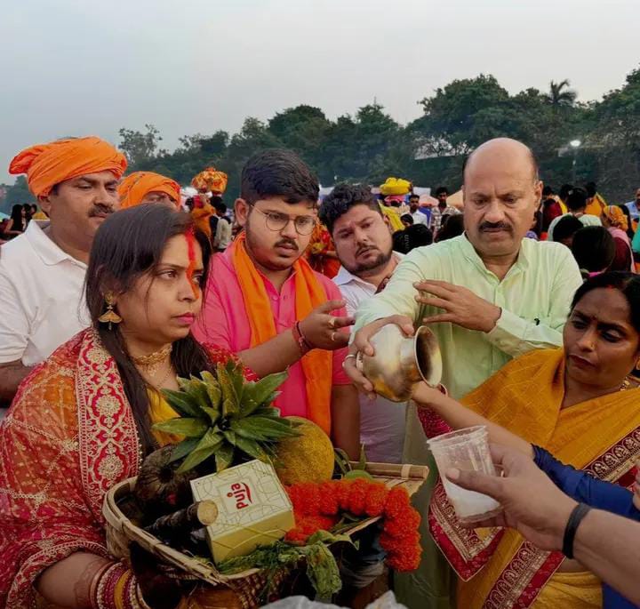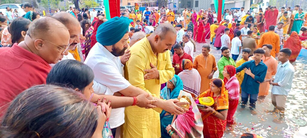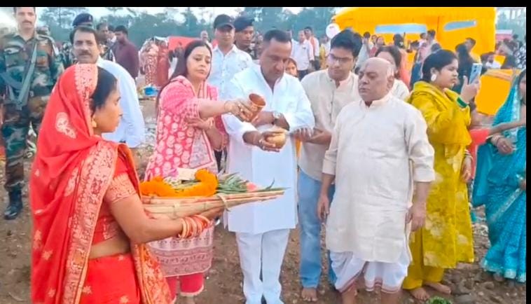 छठ घाटों पर भक्तिमय माहौल, जन प्रतिनिधियों ने भी दिया अर्घ्य