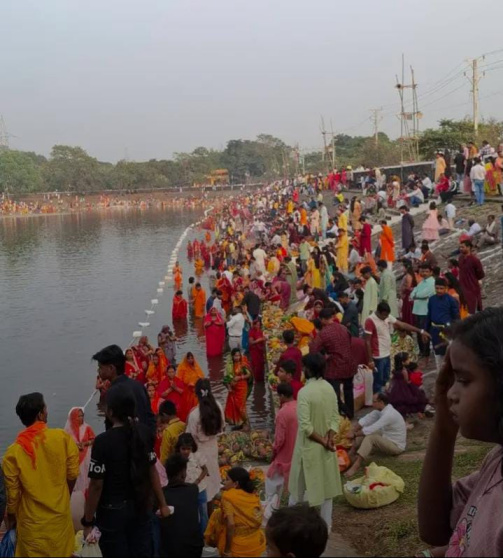 जमशेदपुर : जमशेदपुर में लोकआस्था का महापर्व छठ पूजा पूरे हर्षोल्लास के साथ मनाया जा रहा है। सिदगोड़ा स्थित सूर्य मंदिर प्रांगण में बने छठ घाटों पर व्रतधारियों की अपार भीड़ उमड़ पड़ी है। हर तरफ भक्ति, श्रद्धा और आस्था का अद्भुत संगम देखने को मिल रहा है।
