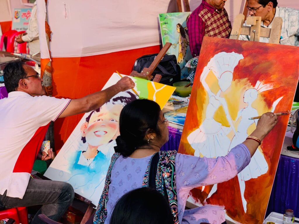 बाल मेले में आज झारखंड और आसपास के क्षेत्रों के कई चर्चित चित्रकारों ने बच्चों के बीच लाइव पेंटिंग का प्रदर्शन किया।