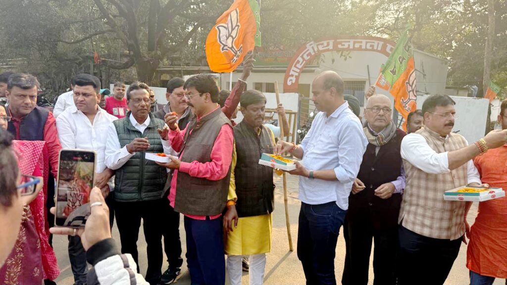 भाजपा जमशेदपुर महानगर के कार्यकर्ताओं ने लड्डू बांटकर साझा की खुशियां