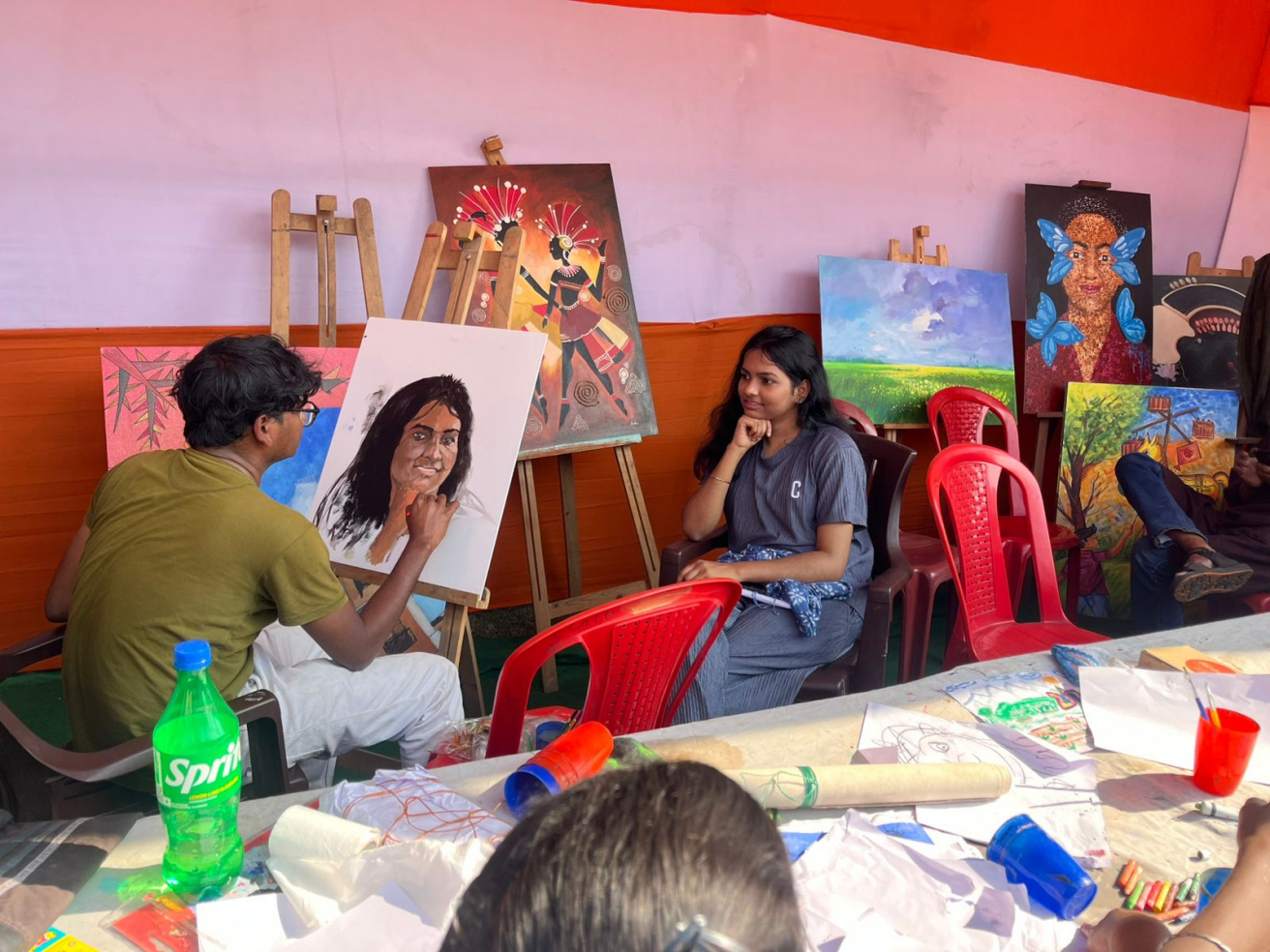 जमशेदपुर : इन चित्रकार महोदय का नाम है पैक्स सोय मुर्मू। उनके सामने बैठी हैं कुमारी खुशी। टाटा स्टील में कार्यरत हैं। खुशी बैठी हैं। पैक्स उनका स्केच तैयार कर रहे हैं। जो भाव खुशी के चेहरे पर है, वही भाव चित्र में है। बिल्कुल हू-ब-हू। यह स्केच तैयार हुआ चतुर्थ बाल मेले में। प्रथम आवरण श्याम-श्वेत का। जब पैक्स ये चित्र बना रहे थे, तब उनकी अंगुलियों की तेजी देखते ही बन रही थी। सटीक, साफ-सुथरी, नो ओवरलैपिंग। नो करेक्शन। काले रंग का बैलेंस भी परफेक्ट। सेकेंड लेयर में कलर चढ़ाया गया।