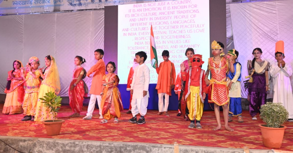 कार्यक्रम की शुरुआत विद्यार्थियों द्वारा तुलसी पूजन से हुई, जिसने पर्यावरण संरक्षण और भारतीय संस्कारों का संदेश दिया। इसके बाद बच्चों ने रंगारंग सांस्कृतिक प्रस्तुतियों के माध्यम से दर्शकों को मंत्रमुग्ध कर दिया।