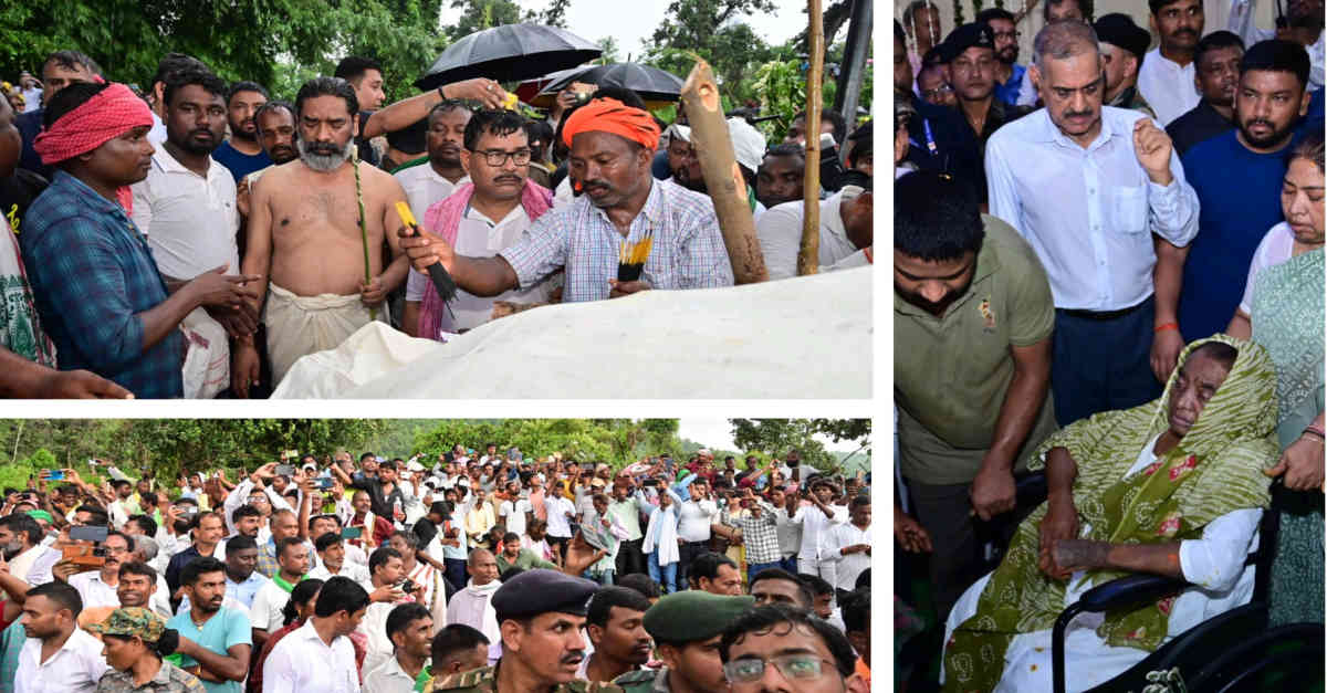 Ramgarh, Jharkhand : झारखंड आंदोलन के पुरोधा, पूर्व मुख्यमंत्री और आदिवासी समाज के सबसे बड़े जननायक “दिशोम गुरु” शिबू सोरेन मंगलवार को पंचतत्व में विलीन हो गए। उनका अंतिम संस्कार उनके पैतृक गांव नेमरा (जिला रामगढ़) में राजकीय सम्मान के साथ किया गया। मुख्यमंत्री हेमंत सोरेन ने अपने पिता को मुखाग्नि दी और उन्हें अंतिम जोहार अर्पित किया। अंतिम संस्कार के समय भावुक हुए हेमंत सोरेन की आंखें भर आईं। उन्होंने भारी मन से अपने राजनैतिक गुरु और पिता को अंतिम विदाई दी। इस अवसर पर उनके भाई बसंत सोरेन समेत पूरा परिवार, सैकड़ों ग्रामीण और झारखंड भर से आए समर्थक उपस्थित थे।