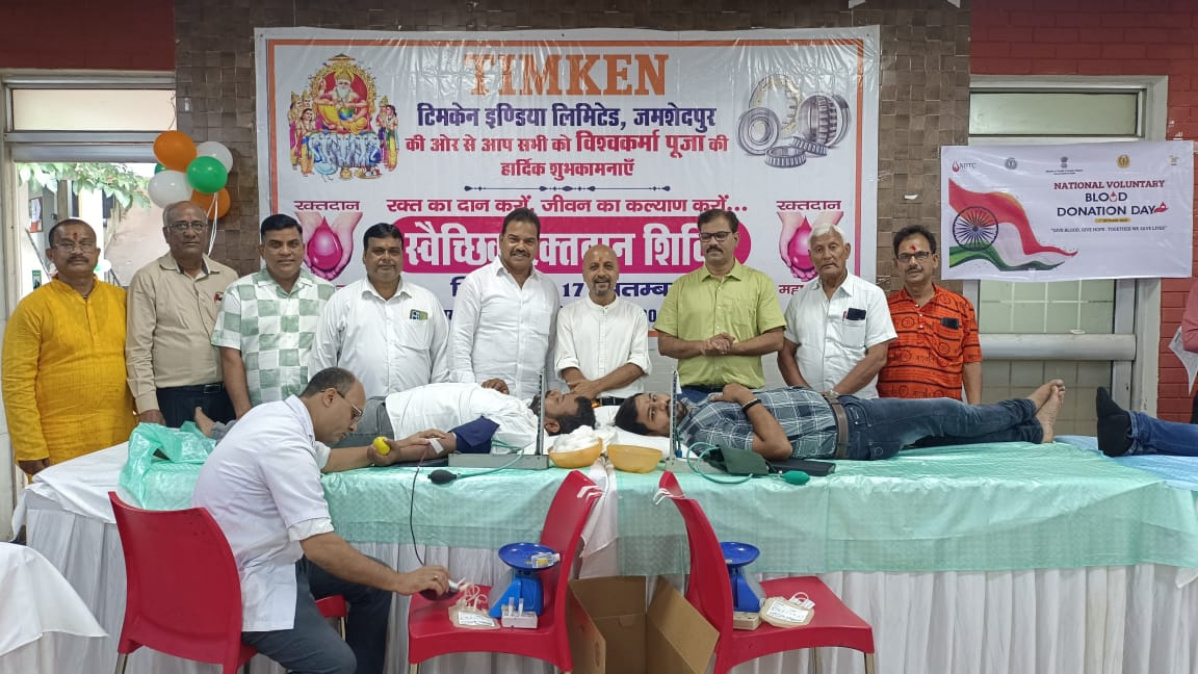 जमशेदपुर : विश्वकर्मा पूजा 2025 के शुभ अवसर पर टिमकेन कंपनी ने सामाजिक सरोकार निभाते हुए रक्तदान शिविर का आयोजन किया। इस शिविर में कंपनी के वरिष्ठ अधिकारियों, यूनियन पदाधिकारियों और कर्मचारियों ने उत्साहपूर्वक भाग लेकर आयोजन को सफल बनाया।
