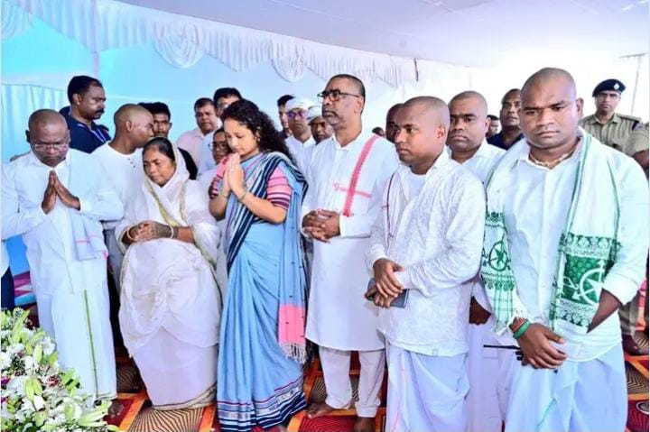 Jamshedpur : जमशेदपुर के टेल्को स्थित घोड़ाबांधा फुटबॉल मैदान में झारखंड के दिवंगत मंत्री रामदास सोरेन के श्राद्ध कर्म का भव्य आयोजन किया गया। इस श्रद्धांजलि सभा में झारखंड के राज्यपाल संतोष गंगवार, मुख्यमंत्री हेमंत सोरेन, कल्पना सोरेन, पूर्व मुख्यमंत्री रघुवर दास, मीरा मुंडा, कुणाल षाडंगी विशेष रूप से शामिल हुए। उन्होंने स्वर्गीय सोरेन की तस्वीर पर पुष्प अर्पित कर उन्हें श्रद्धांजलि दी।